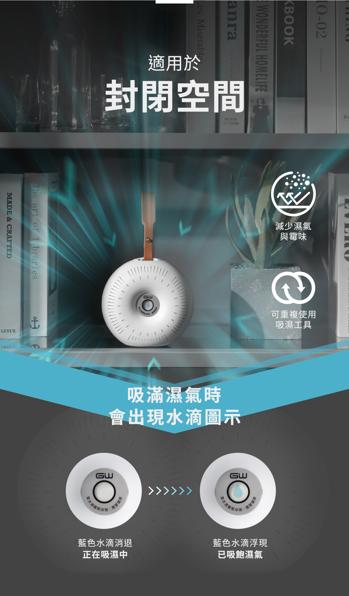 - 專為衣櫃除濕防潮設計 採用天然環保除濕顆粒 可重複使用